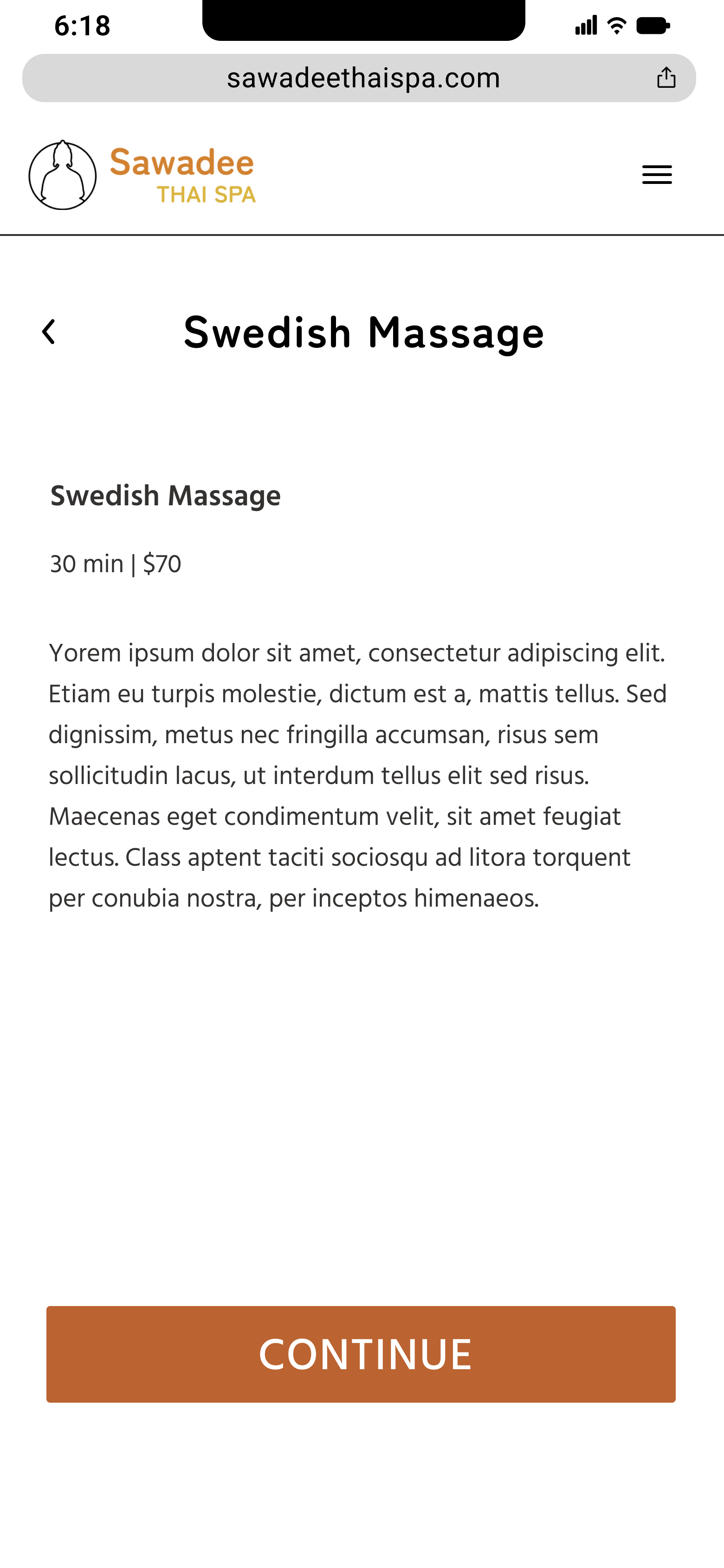 Project Scope: Imagine a project to iterate upon a responsive flow for Sawadee Thai Spa in Los Angeles, CA in 80 hours. The stakeholders requested a minimum viable product, and the final deliverable will be a high-fidelity prototype to hand off to developers.