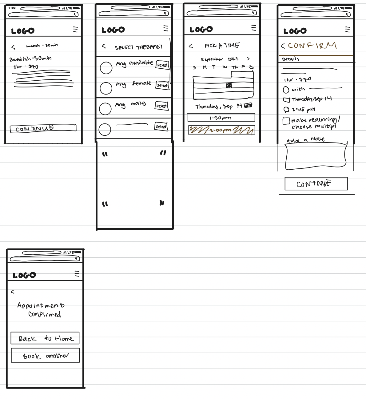 From a UX standpoint, you would want to choose a date and time before choosing a therapist. So, I switched the screens to follow that order,